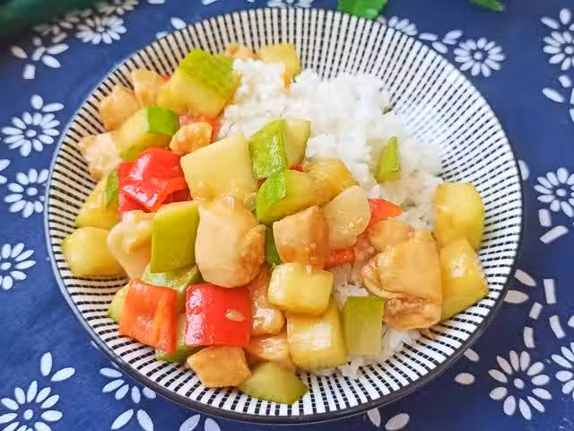 食材:西葫蘆、雞胸肉、薑絲、蒜片
