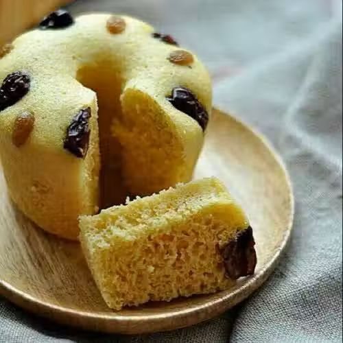 材料:玉米粉30g,低筋麵粉70g,紅棗10g,白砂糖20g,水100g,酵母2g。