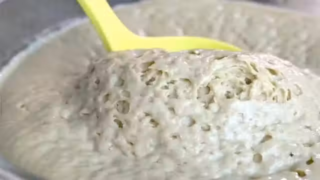 用勺子攪拌,讓氣泡全部排出,麵糊恢復成這種感覺,這一步很重要,氣泡全排出才能最終蒸出來開花的糕點呢!