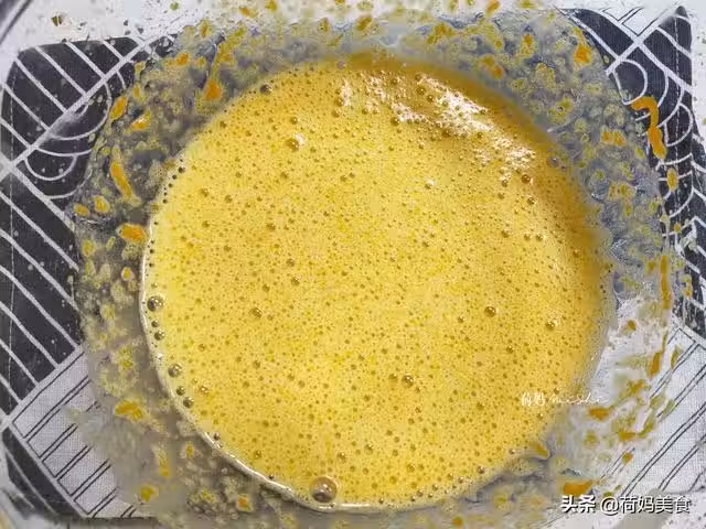 3、然後將低筋麵粉過篩到南瓜雞蛋糊中,用筷子攪拌均勻,沒有顆粒無粉狀態即可。沒有低筋麵粉,用普通麵粉也是可以的,當然粘米粉也可以。