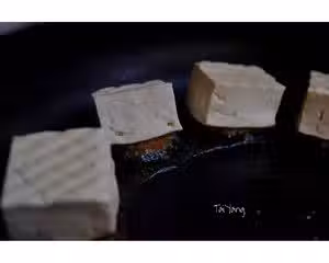 翻轉後轉香豆腐.還是保持中小火.不要猛火噢.猛火很容易將豆腐煎得太焦