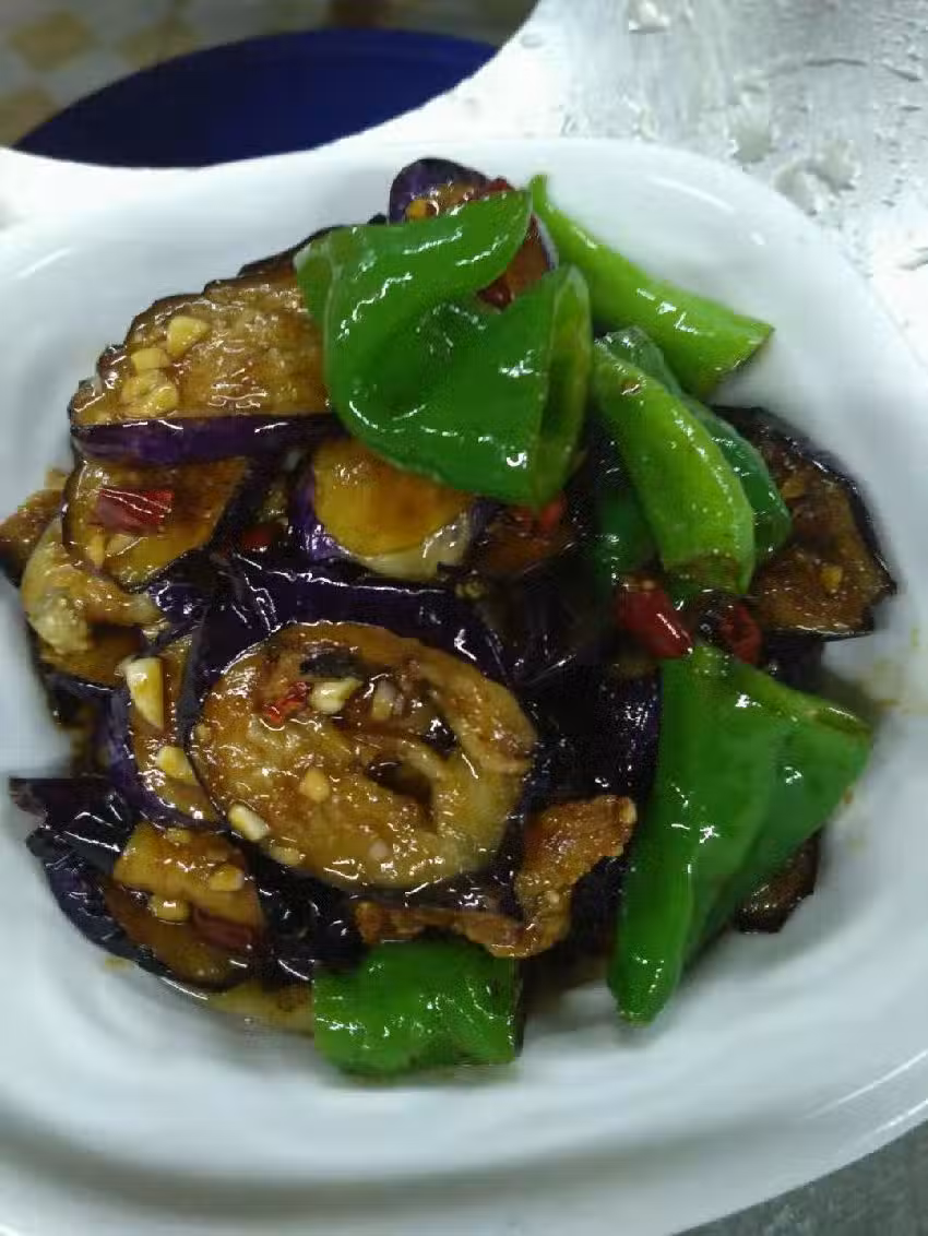 長茄子4個,肘子肉200克,尖椒1個,大蒜4瓣,生抽2勺,精鹽適量,白糖1勺,雞精少許。