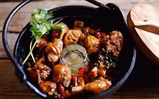 大火熱鍋,下油,爆香蔥姜,倒入兔肉,不斷翻炒3分鐘左右。然後下一勺生抽,加入個人喜好的冰糖量(0-2塊),炒勻,盛出。