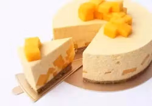 8、將芒果慕斯倒入蛋糕模,輕輕震去大氣泡後,送入冰箱冷藏4小時以上。即可食用。