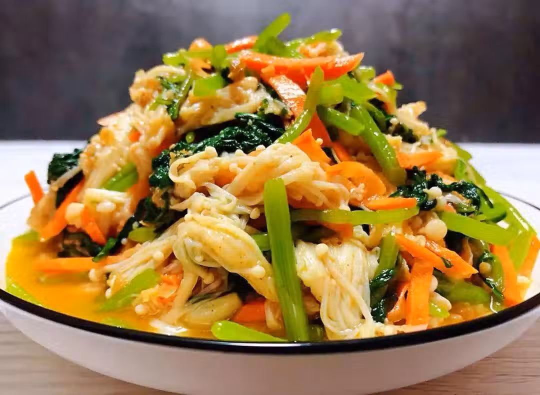 茼蒿涼拌胡蘿蔔金針,鮮嫩可口,讓你食慾大增!