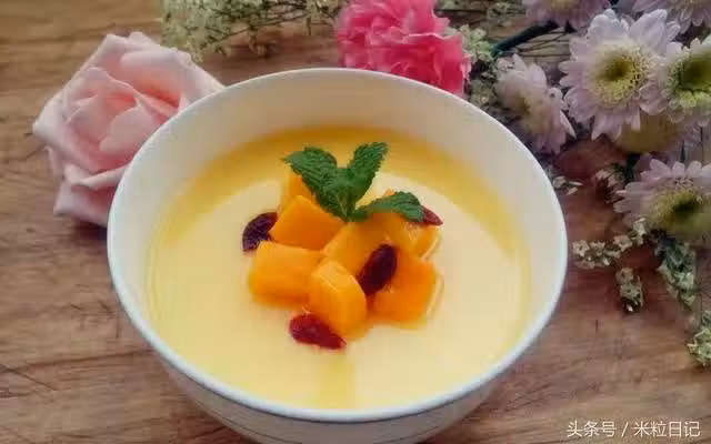 原料:土雞蛋2個、純牛奶250ml、芒果1個、蜂蜜杏仁10粒