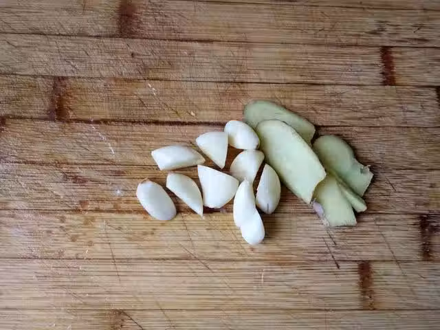 6.砂鍋內加油,平攤砂鍋底部,爆香姜蒜。(我的砂鍋是可以干燒的,所以直接在上面可以炒菜。如果是普通砂鍋,請把這一步放在炒鍋中進行,否則炸裂了,我不管哦!)