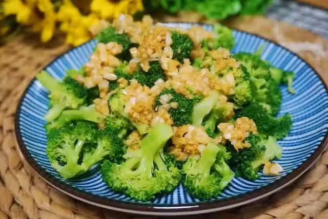 4.將蒜末澆到西藍花上拌勻即可。