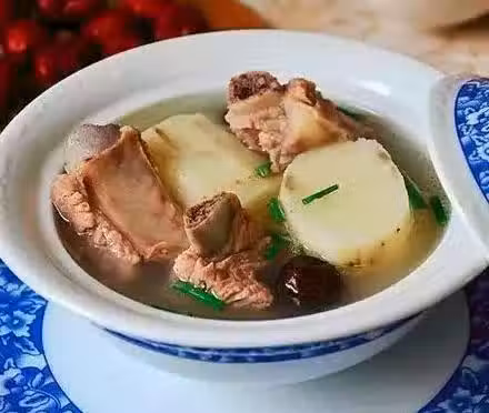 6.放入山藥,大火煮開,小火煲至山藥酥;