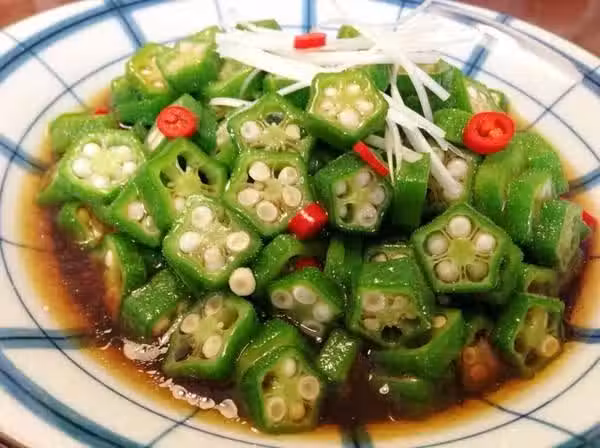 用料:秋葵5隻、大蒜2瓣、生抽若干、麻油適量、老乾媽適量