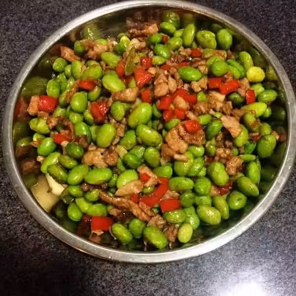 用料:肉末一堆、毛豆一袋、青辣椒2個、大蒜少許、剁椒醬一勺