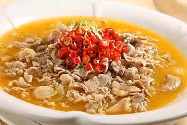 3.放入金針菇,放鹽、糖、雞精、白醋若干,口味自便,最後放入肥牛,水燒開後裝盤