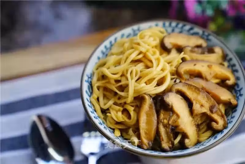 7. 面煮好之後控水,與煮好的香菇拌掛味即可。