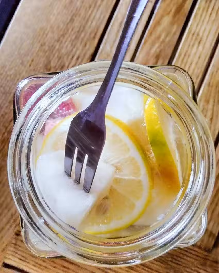 1、將檸檬切片、蘋果切塊、梨去皮切塊,放於杯中;