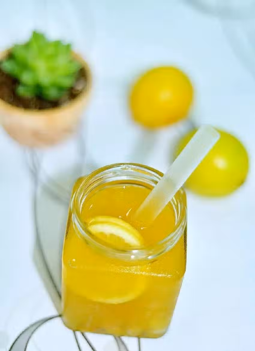 百香果1個,檸檬1個,汽水1罐,冰塊適量,蜂蜜一小勺。