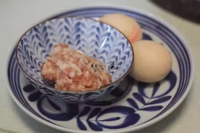 3 肉糜加入鹽、料酒和澱粉,拌勻