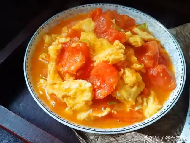 【番茄炒雞蛋】 材料:雞蛋3個、西紅柿3個、蔥1段、油鹽適量、白糖1湯匙、