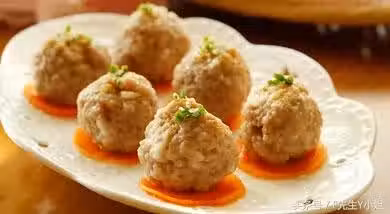 3、胡蘿蔔洗凈去皮切成薄片,肉餡搓成桌球大小的肉丸子。將做好的肉丸子放在胡蘿蔔片上,裝入盤中。蒸鍋內加入適量的水燒開,放入肉丸子大火蒸8分鐘左右,熟透即可。