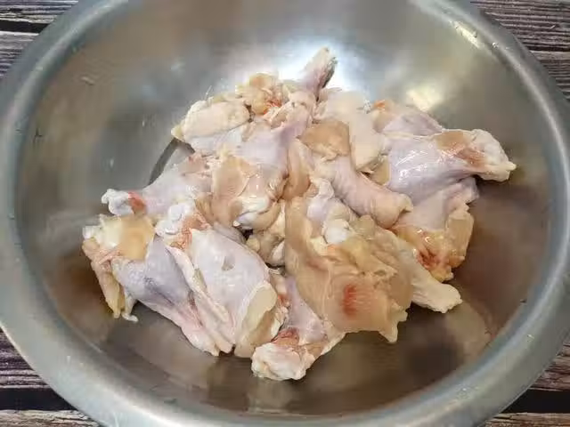 2、泡出雞翅根中的血水後,把水分控干,加入50克奧爾良腌料、少許薑片和50克純凈水翻拌均勻,讓每一塊翅根都均勻地沾附上腌料,包上保鮮膜,放入冰箱冷藏腌制3小時左右。腌制翅根的時候除了腌料,還要加等量的清水,這是鮮嫩多汁的關鍵;如果沒有奧爾良腌料,可以根據自己的口味加生抽、鹽、蚝油等調味料來腌制。