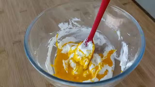 4、另準備一個碗,加180克中筋麵粉、30克玉米澱粉、1克鹽、2克小蘇打、3克泡打粉,混合均勻後過篩倒入豬油的碗中。