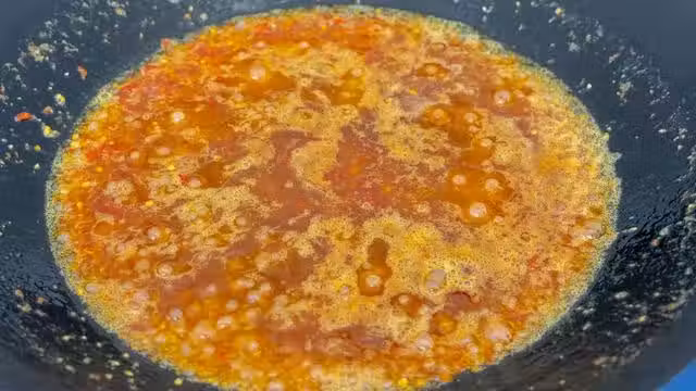 7、繼續加30克白糖,80克高度白酒,不停的攪拌,這個醬會慢慢的越來越稠,這裡要提醒大家的就是熬醬的時候一定要注意安全,不停的攪拌就對了,特別是當鍋里的溫度越來越高的時候,一定要記得關火了繼續攪拌一分鐘再停,我整個過程用了15分鐘;