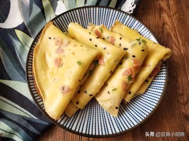 大家好,歡迎來到豆苗小廚房,今天分享的是「宅在家裡不出門,沒有蔬菜也不怕,早餐吃雞蛋餅,做法一看就會」。