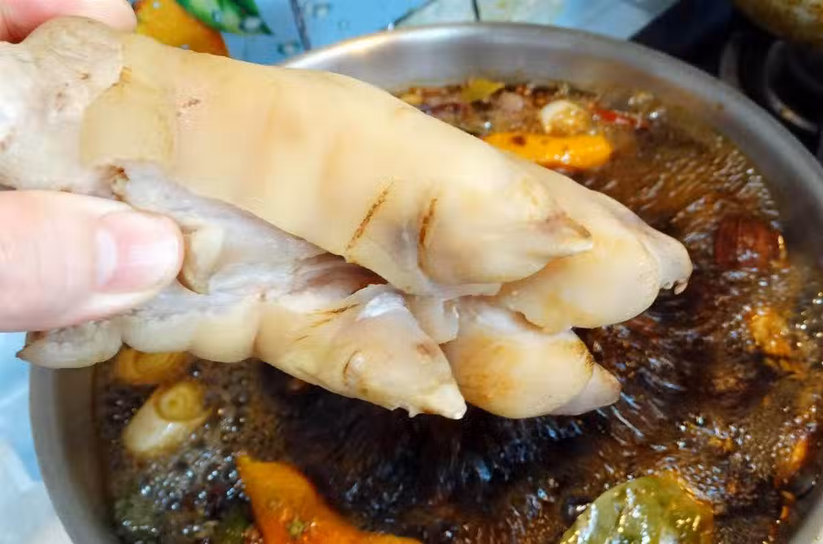 如果想吃特別軟爛的豬蹄,時間還可以延長,用筷子紮透豬蹄,看看軟爛的程度。