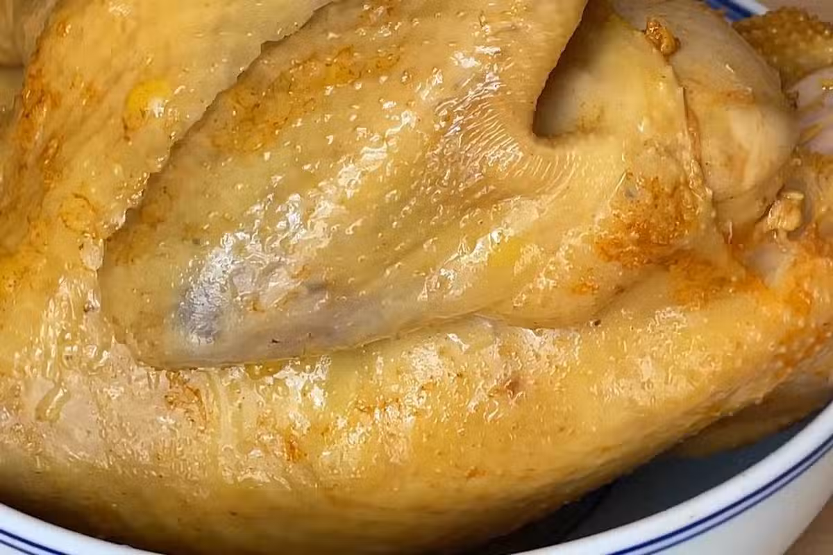 家庭版鹽焗雞,將整隻雞放入電飯煲,不加水不加油,鹹香味十足,全家人都喜歡!