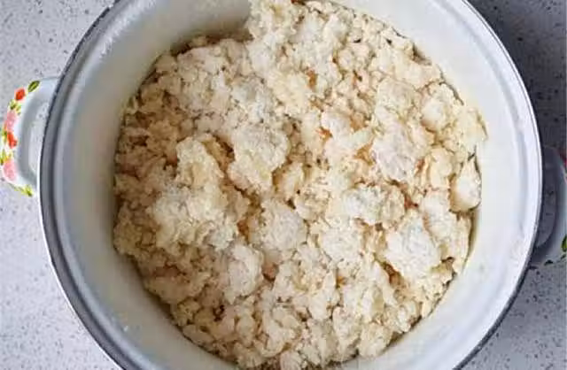 第二步,將麵條攪拌均勻,撒上適量鹽,加入少量水,揉成麵糰,準備少量食用油,不時在手上塗上一些油,使麵條更香更濃。