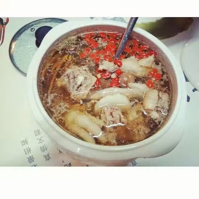 雞半隻;山藥半根;當歸適量;黃芪適量;枸杞適量;鹽適量;桂圓干適量
