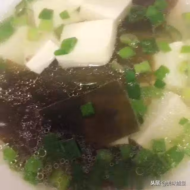 參加豆腐,小火再煮5分鐘。豆腐煮久了容易碎,必定要等海帶根本熟了再放。