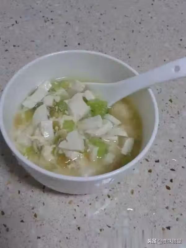 鍋中入清水,豆腐切成小塊或絲,榨菜切成丁,黃瓜切成丁,雞蛋打勻。
