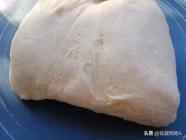 5、經過2個多小時的發酵麵糰發好了,體積也變成了原來的2.5倍大,把麵糰取出排氣。