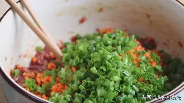 3、胡蘿蔔,用擦板給它擦成細絲,然後再剁成末,接下來我們給它放到剛剛腌制好的肉餡中里,在放入蔥花,食用油和香油給它攪拌均勻,調製羊肉餡不需要太多的調味品,那樣會掩蓋羊肉的鮮味,加入花椒水可以去除羊肉的膻味,調出來的餃子餡不僅沒有膻味而且還特別的鮮嫩多汁。