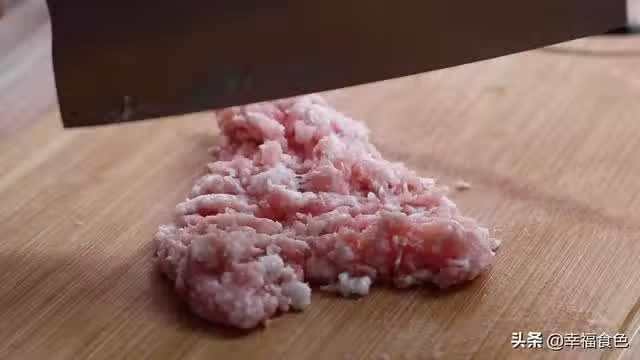 7、炒好的肉末乘出來倒入豆腐上。均勻地鋪在豆腐的上面,味道可以稍微放咸一點點,這樣蒸出來的豆腐也會比較有味道。