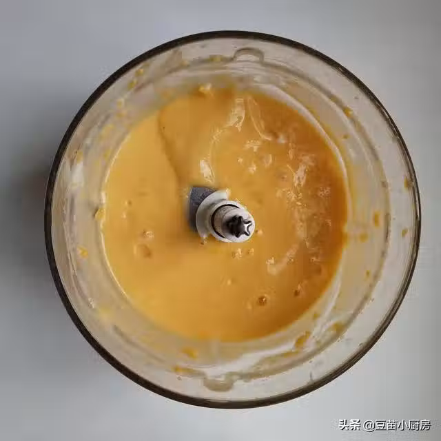 芒果去皮切丁和酸奶,白砂糖一起放入料理機打成芒果酸奶泥。