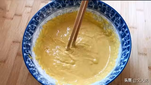 家裡食材緊張,1塊南瓜半碗大米粉,筷子攪一攪,早餐吃著香~
