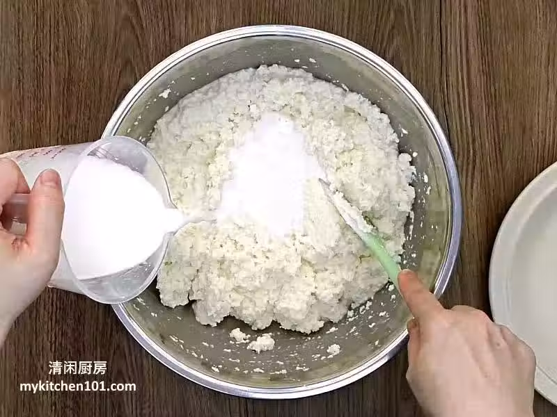 無蛋版蒸三色木薯糕,底層是原味,中間青色層是香蘭口味,上層褐色層則是黑糖口味。