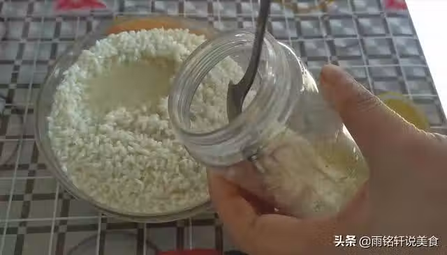 第一步:300克大米倒入玻璃碗中,倒入適量的清水沒過大米,提前浸泡一個晚上;第二天早上把大米洗乾淨控干水分,然後倒入料理機里,倒入350克的清水,把它打成細膩的米漿。