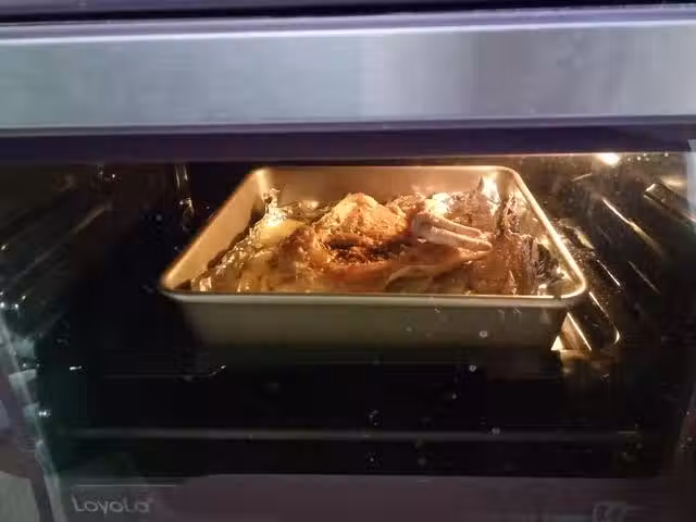 4.烤箱210度先烤15分鐘,取出,翻面,再刷一遍腌制汁,繼續烤20分鐘。