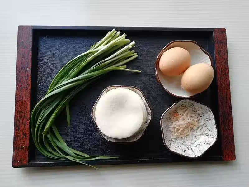 1.準備好所需材料,韭菜擇洗乾淨,蝦皮投洗乾淨