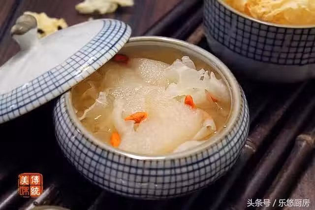 第一步:準備食材。泡發好的銀耳300克、梨1個、冰糖適量、枸杞適量。(冰糖的量隨自己的口味準備)