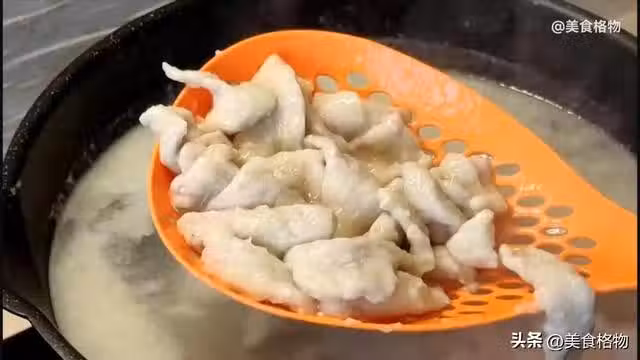 全部放入之後焯燙大概一到一分半鐘之後,用漏勺將其撈出,看一下這肉片多軟嫩,全部準備好後,咱們就差最後一個步驟了。打幾顆雞蛋,我這裡菜比較多,所以準備了四顆雞蛋,打入碗中之後,用筷子將其攪散,多攪拌一會,攪到上面出現浮沫就行。雞蛋攪黃後先放在一旁。咱們起鍋燒油,油溫六七成熱的時候加入雞蛋,稍稍定型後用鏟子推開,將其炒熟。完全炒熟之後先將其盛出。