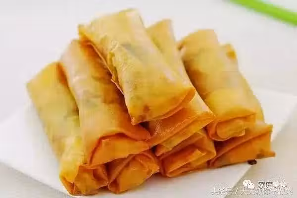 用料:雜果罐頭1罐、春卷皮2張、沙拉醬30克、植物油30克。