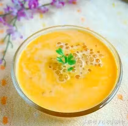 4、把煮好的南瓜和牛奶與少許白糖一起放入料理機中攪拌成糊狀倒入碗內