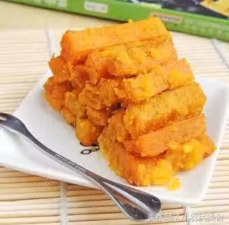 食材:老南瓜200克、鹹鴨蛋黃3個,油適量、糖適量
