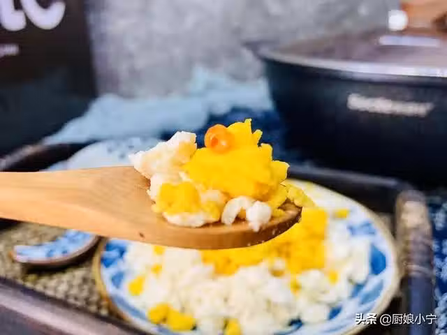 蛋白與蛋黃都要中小火炒,切記不可開大火,不可讓蛋出現焦黃色。