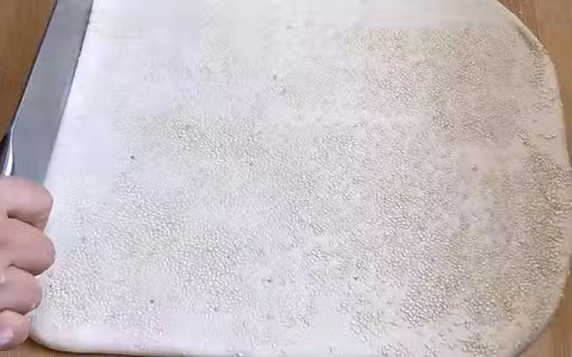 第六步:把餅切成自己喜歡的大小,彼此間留下一定的間隙;然後蓋上布醒發至拿起來輕飄飄的。