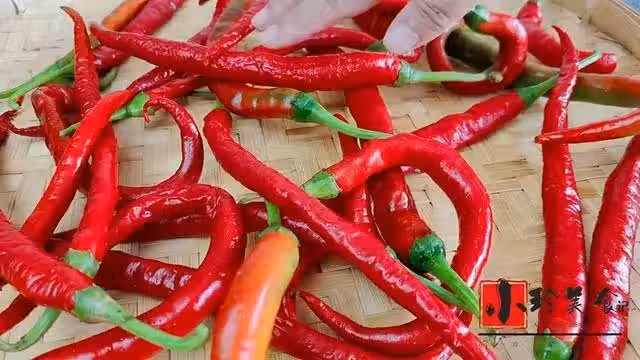5.紅線椒水分晾乾以後把根部掰下來,用刀切碎你也可以用絞肉餡機子絞碎,不需要絞太碎,切好以後裝入碗裡面,一塊生薑也切碎切好以後和辣椒裝在一起備用。