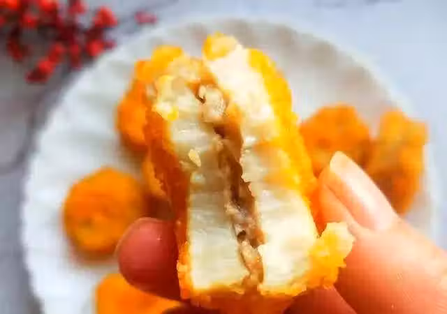 相信大家都吃過耦合,茄盒,過年的時候,茄盒,耦合家裡總是要炸一大盆,那麼朋友們有沒有吃過杏鮑菇做的肉盒呢?做好的杏鮑菇肉盒,炸的金黃酥脆,裡面鮮嫩多汁,比肉肉還好吃!比耦合,茄盒都鮮,過年的餐桌上,有這樣一盤菜,親戚朋友們都搶著吃!